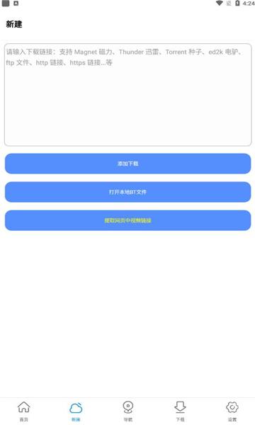 新建任务:支持磁力链接,各种类型的bt的资源可以让用户在这里随意的下载。