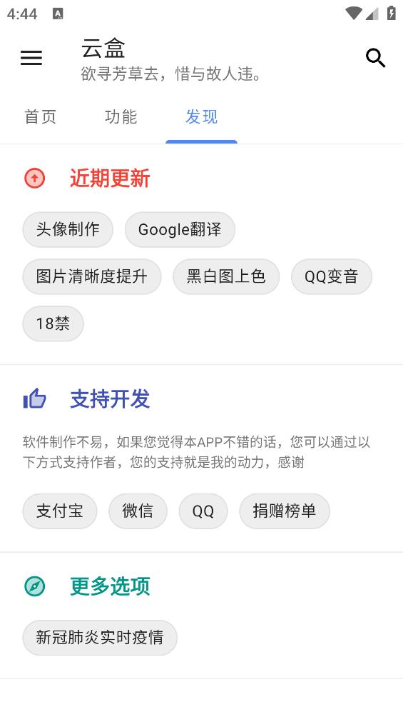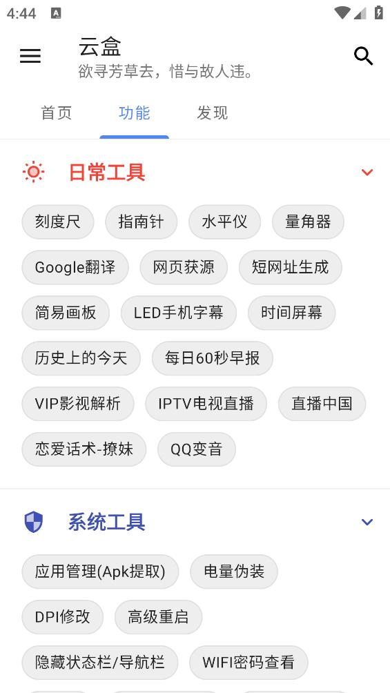 云盒app是一款非常实用的手机工具箱。软件为用户提供了超多的日常实用工具,用户可以随时在线使用,软件内的工具操作简单,方便实用,让用户生活更便捷,快来下载使用吧。