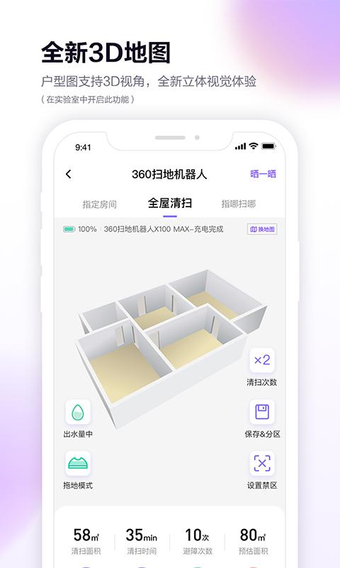 360扫地机器人app是一款非常好用的智能机器人软件。用户可以通过软件快速控制扫地机器人,随时在线查询轨迹,设置清扫区域和禁区,非常的方便,还有更多的便捷清扫功能等待用户探索,感兴趣的用户快来下载使用吧。