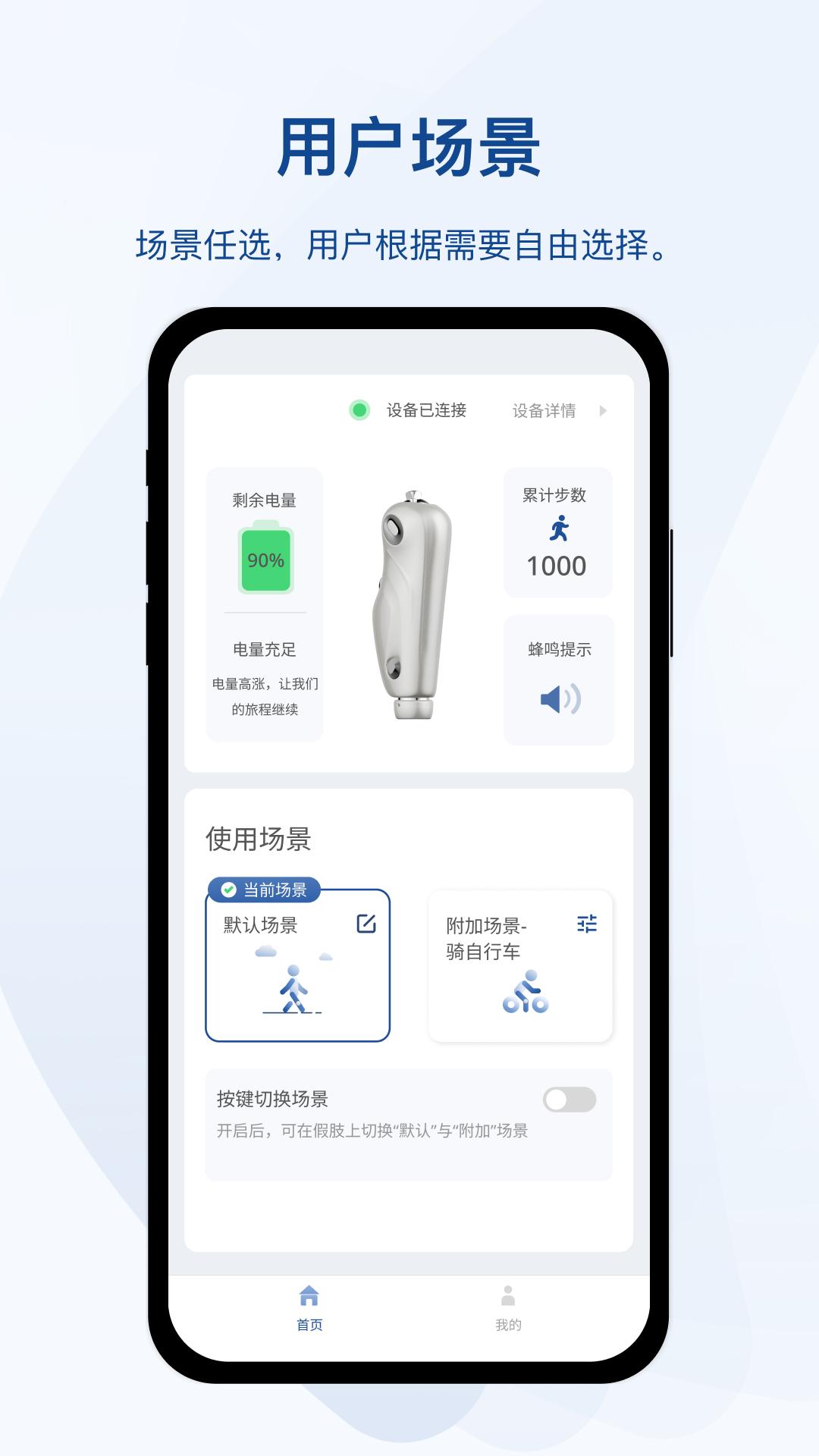 在应用中查看智能义肢的相关信息,同时可以使用应用进行场景的切换。
