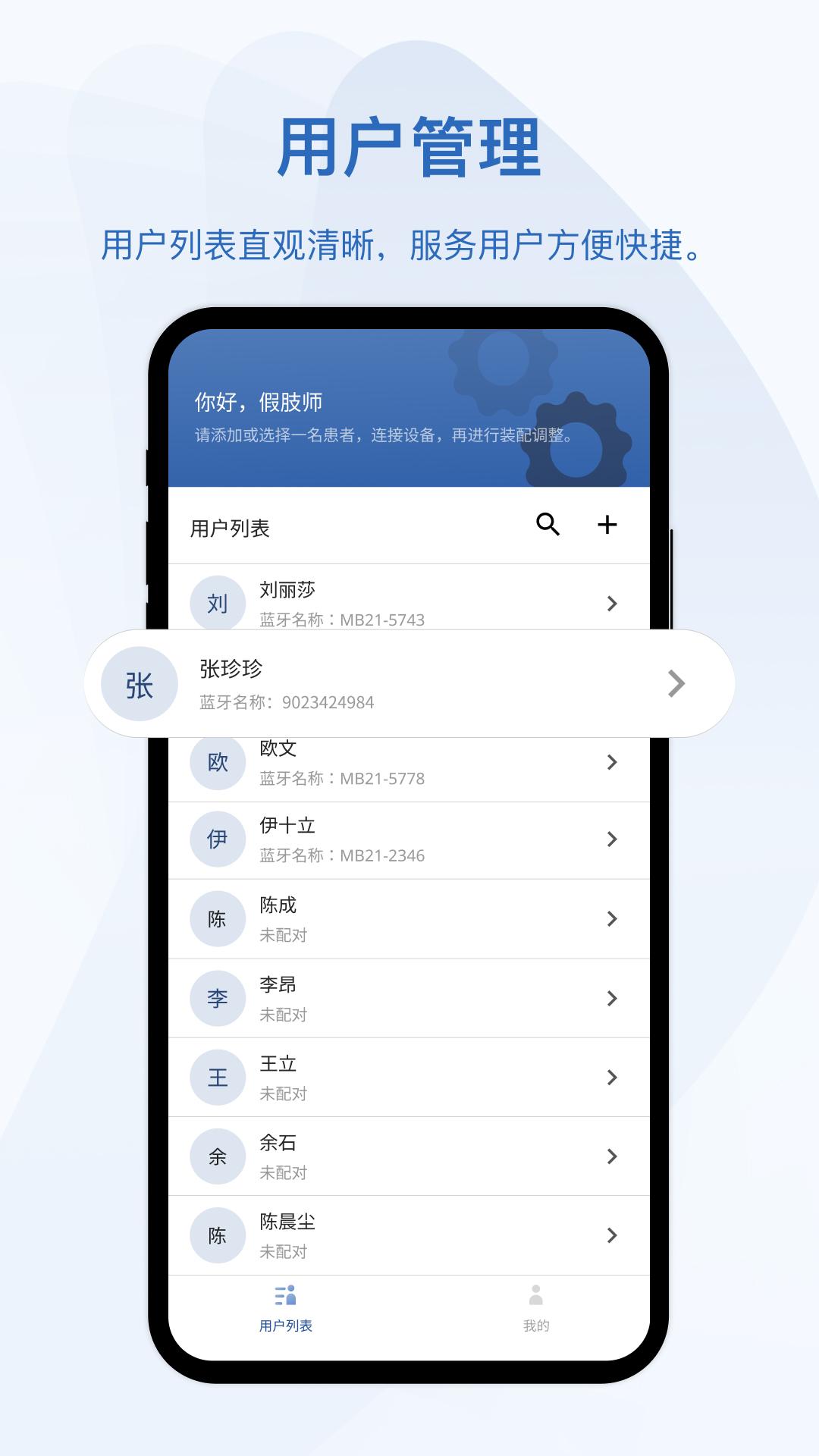 -提供多种实用功能,通过查看数据信息了解义肢的使用情况,以及调整义肢的参数,保证最佳的使用效果。