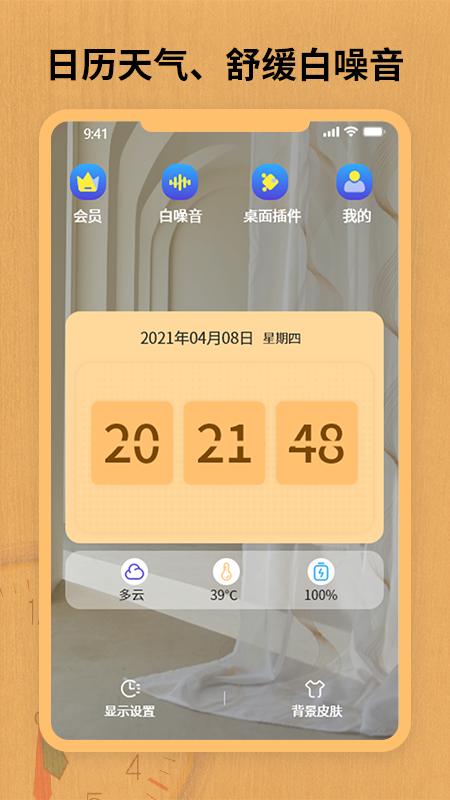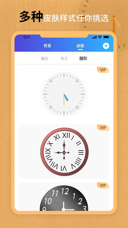 全屏翻页动画,经典动态翻页时钟、简约表盘时钟、极简数字时钟等多种样式任意挑选