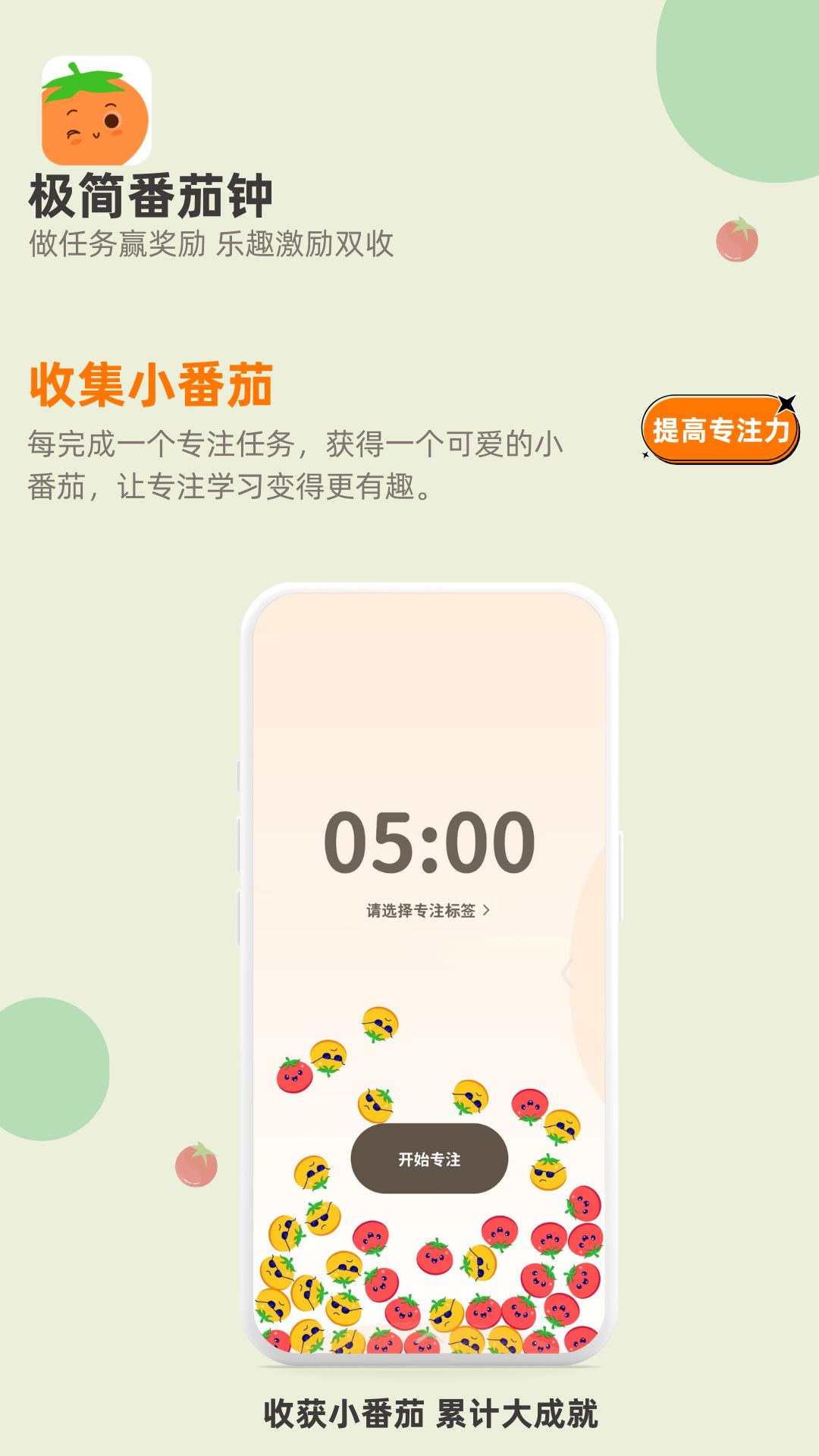 每完成一个番茄钟,收获一颗治愈小番茄!