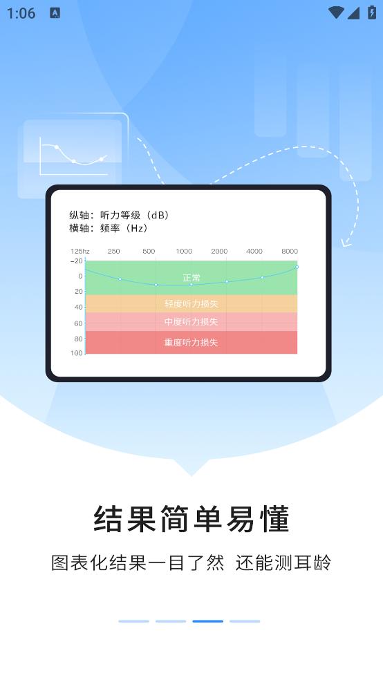 用户可以通过该软件初步了解自身听力状况,并且可以进行听力自测。