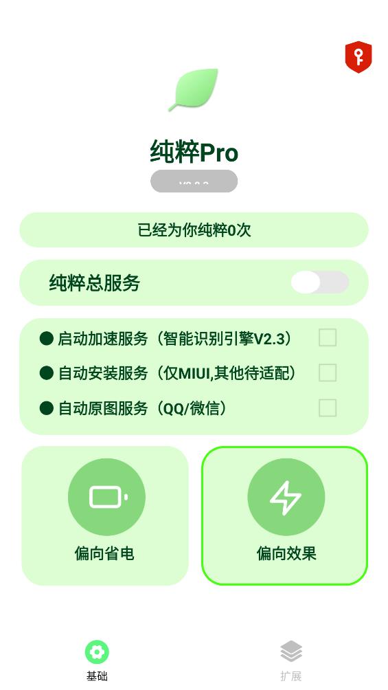 然后,回到主界面,开启纯粹总服务开关,并勾选可以自动跳过广告的“启动加速服务”选项。