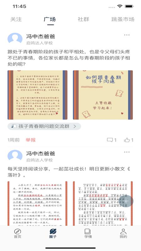 “圈子”板块主要是方便家长之间的交流沟通,为每位家长提供信息互换的渠道。
