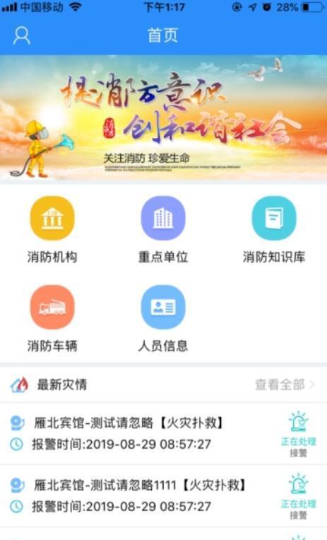 实现重点单位管理、消防机构管理、消防车辆定位管理、消防员定位管理、消防知识库等服务