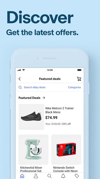 ebayapp等你来享,好用的跨境电商购物平台满足你的购物需求,各种你所需要的商品均可以通过这款app进行线上购物,同时各类大牌商品应有尽有,为你的交易保驾护航,喜爱网购的你千万不要错过!