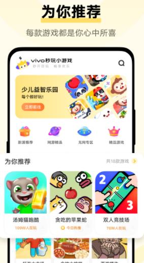 秒玩小游戏免费下载立即可以玩最新版,是由于vivo小游戏中心打造的,是vivo手机中的原生应用,在这个vivo秒玩小游戏中心app里,您不需要安装即可打开游戏秒玩,游戏种类丰富不断上新,有趣的游戏都会第一时间在此上线哦!