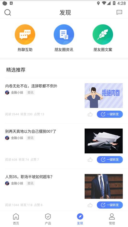 3、可以掌握各类新鲜资讯,也可以通过转发产品领取丰厚的服务费;