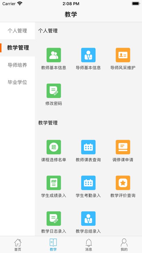 为老师日常管理研究生提供服务,包括学生的基本信息、计划、成绩、开题、论文等相关业务的查询、统计、审核等。