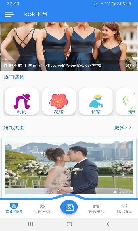 kok平台app是一款非常实用的婚庆服务平台。用户可以在这里随时在线查询各种婚庆服务和婚礼方案,让用户自由选择结婚的方案,还有超多专业商家在线服务,让用户享受一站式婚庆服务,满足用户的结婚需求。