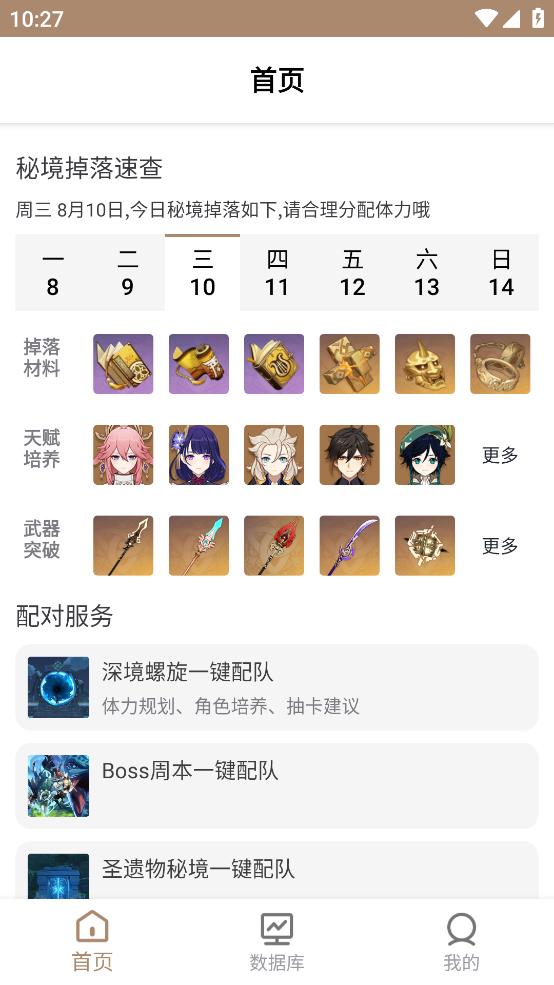 2、提供数据库查询服务,无论是钟离、雷神、神里绫华等热门角色,还是冷门角色,原神工具箱提都提供全方面的数据查询,包括角色培养建议、角色攻略、圣遗物及武器搭配以及等级和天赋突破提升的材料汇总。