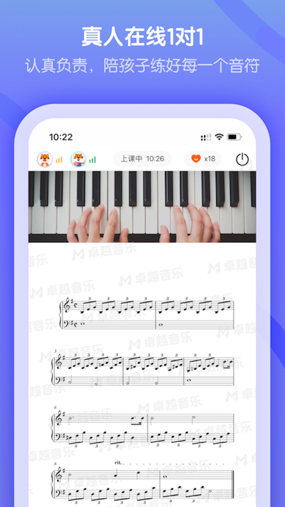 通过“卓越音乐”App,用户即可连接到知名音乐院校的老师进行在线的一对一乐器陪练。