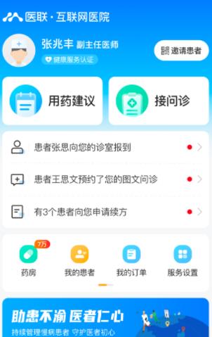 在线执业:为医生提供在线咨询、高效开方、专业医助等服务。