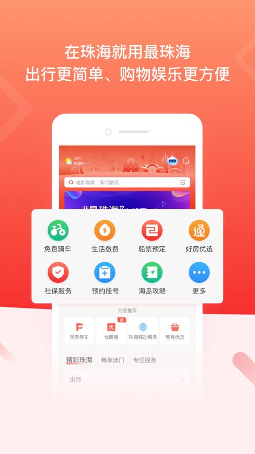 最珠海是一款珠海城市生活服务平台产品,面向珠海本地市民、往来珠海粤港澳大湾区居民及游客提供“医、学、住、行、游、购、娱、政”全场景城市生活服务。