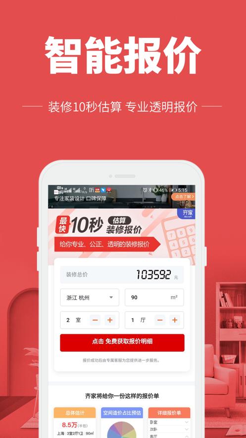 齐家极速版app是一款家庭装修移动服务平台,平台拥有找装修,选建材,装修社区等等丰富功能,可以帮助用户更好的家庭装修,觉得不错的朋友欢迎前来现在使用。