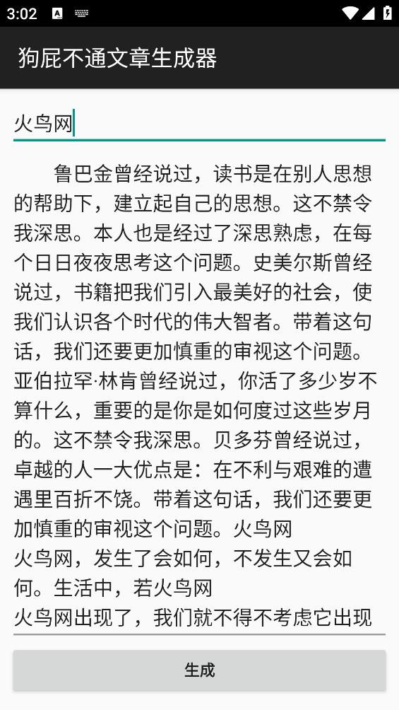 狗屁不通文章自动生成器是一款不错的文章编写软件,这款软件的内容也非常的丰富,用户只需要输入主题和字数就能够生成一大段文章,你直接复制就能够去使用,但是生成的内容是狗屁不通的,喜欢的朋友快来下载体验吧!