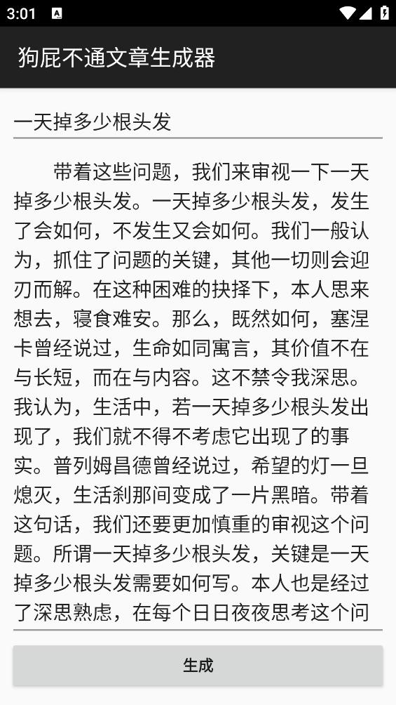 狗屁不通文章生成器app是一款非常专业的文字生成软件。用户可以通过软件快速生成各种类型的文字,只需要用户输入主题和字数,即可快速生成文章,非常的方便,但是由于是AI生成,所以内容是狗屁不通的,仅供娱乐,感兴趣的用户快来下载吧。