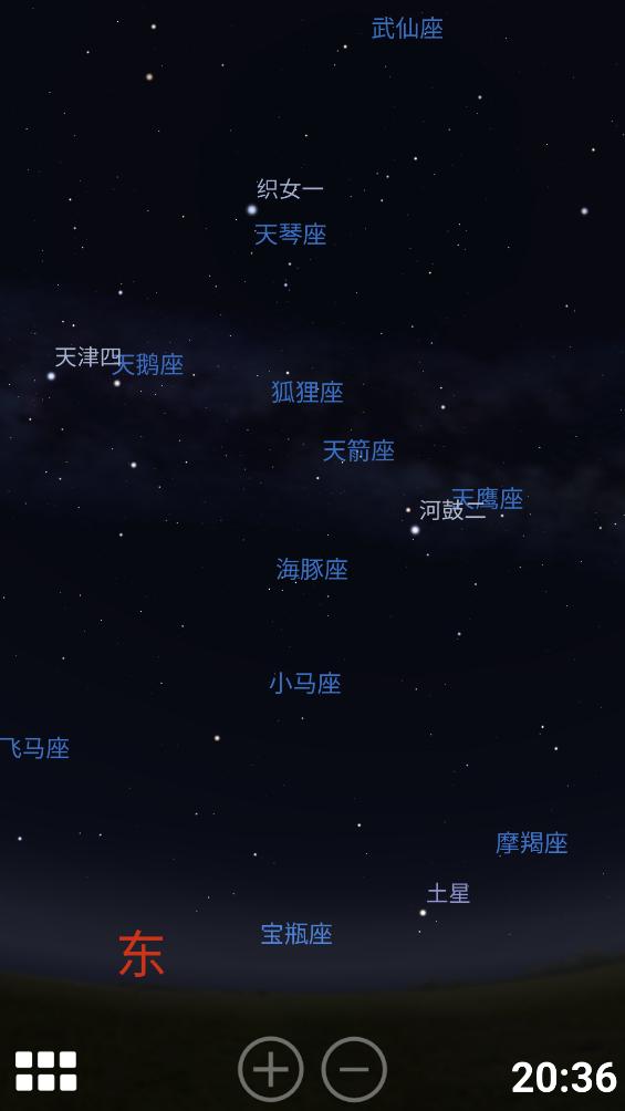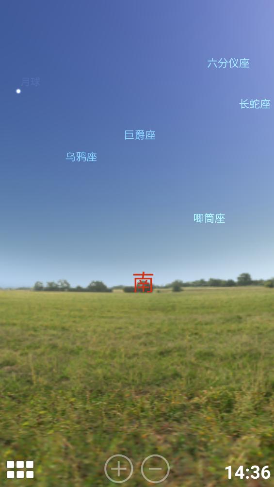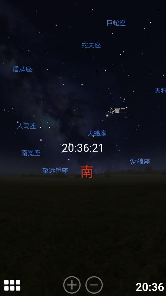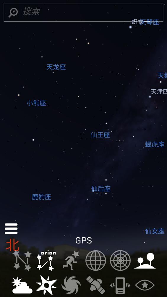 手机探测:打开之后,当上下左右移动手机时,会自动显示当前方位下的模拟星空。