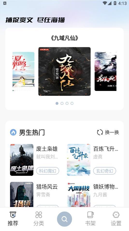 海猫小说app是一款非常不错的小说阅读神器,这里汇聚了热门的全本小说、精选各种好书、多种类型小说,通通全部免费,让你轻松阅读,感兴趣的话赶紧来下载体验一下