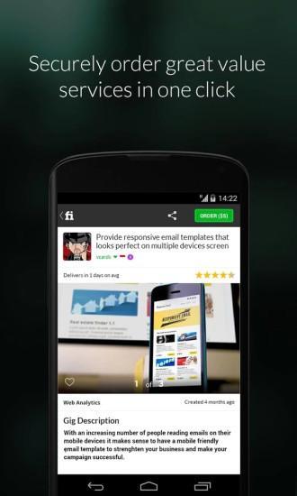 fiverr app是一款非常专业的兼职招聘软件。软件为用户提供了超多的兼职工作,用户可以随时在线查询,轻松找到适合自己的工作,还有超多的网赚兼职任务,让用户赚钱更轻松。