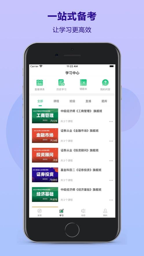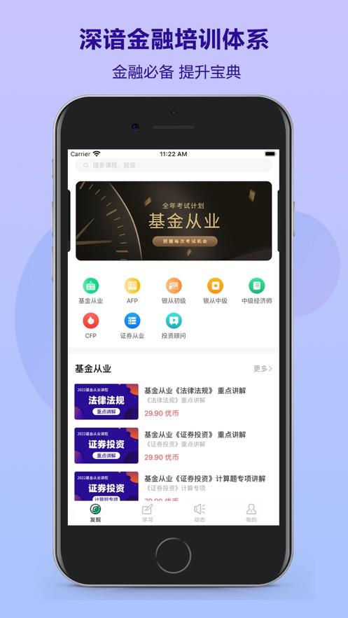 4、课程体系丰富:涵盖银行、基金、证券、三方财富公司所需金融课程,包括但不限于基金从业、银行从业、证券从业、AFP、CFP、经济师、投顾等。