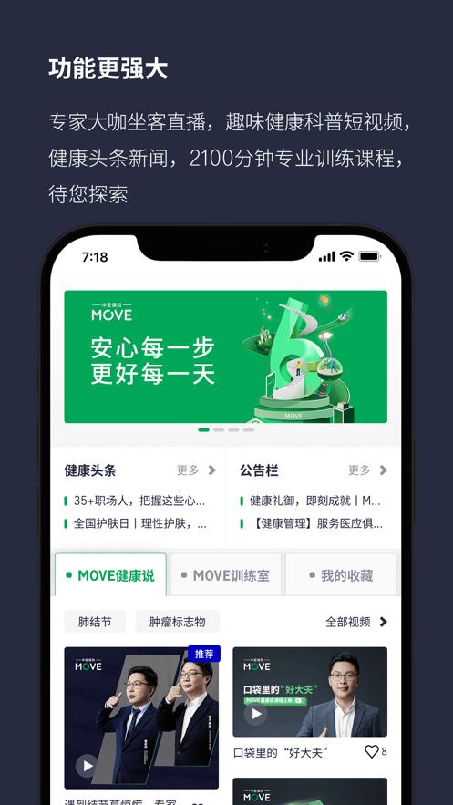 3、 【发现】页面:功能更强大,专家大咖坐客直播、趣味健康科普短视频、健康头条新闻、2100分钟专业训练课程,待您探索;