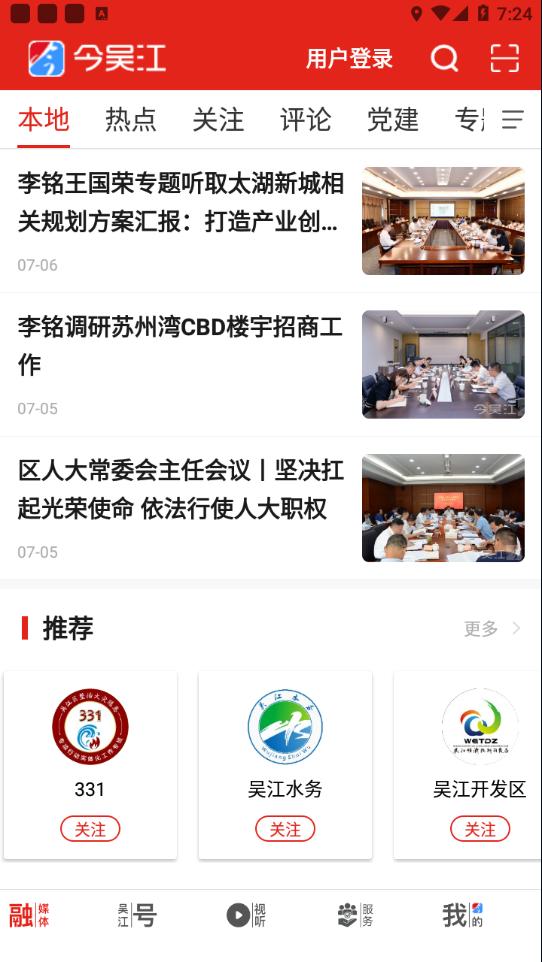 今吴江app是专为吴江区制作的融媒体移动平台,平台拥有新闻资讯,生活服务,视听等等功能内容,可以帮助更好的引导及服务吴江区。