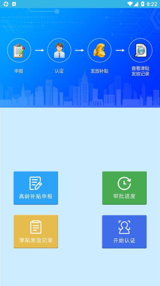 在手机上打开“高龄补贴认证APP”,点击高龄