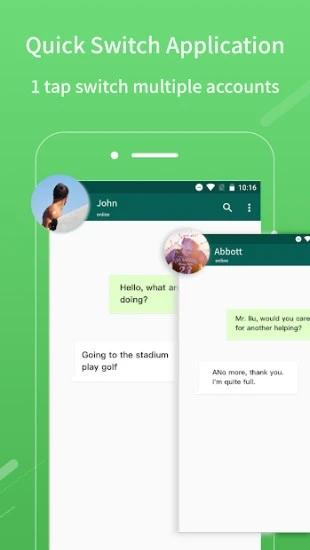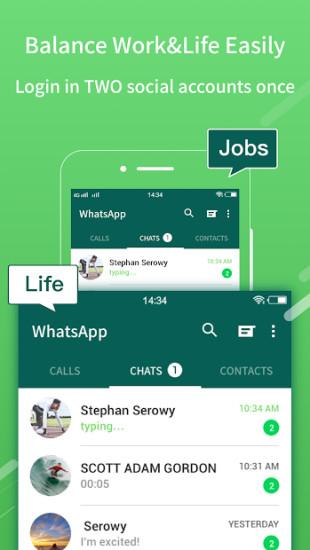 可帮助您在一部手机上同时在线克隆和运行多个社交和游戏帐户。一键式克隆应用程序,轻松为所有社交应用程序添加多个帐户,克隆的帐户和主帐户之间的数据分开存储,消息不会互相干扰。
