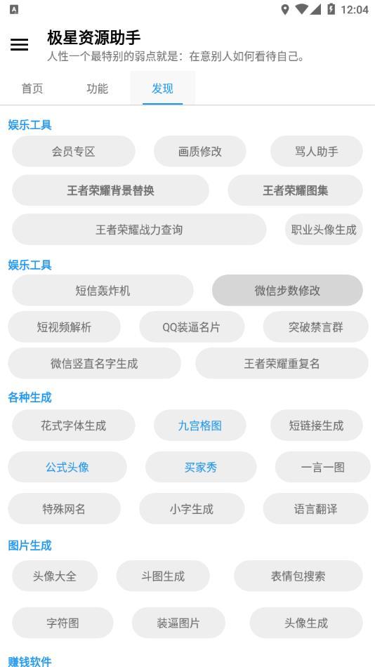 极星资源助手是一款多功能手机辅助工具,集成了上百种工具。它有很多有趣的软件,棘手的软件,游戏名称生成等等。您可以在这里轻松找到所需的内容。