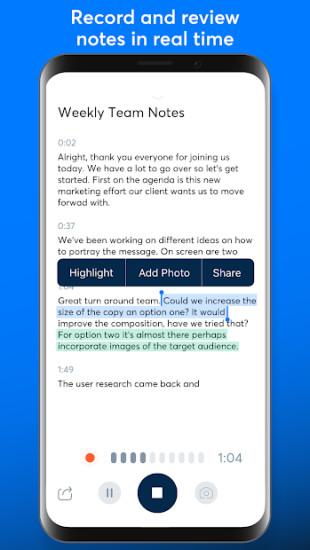 Otter会实时为您记录会议记录,这样您就可以专注于对话,并确保所有信息(如行动、亮点、照片、与会者)都已捕获,易于搜索,并可与您的团队共享。Otter.ai也可以在线获取。只有英语。
