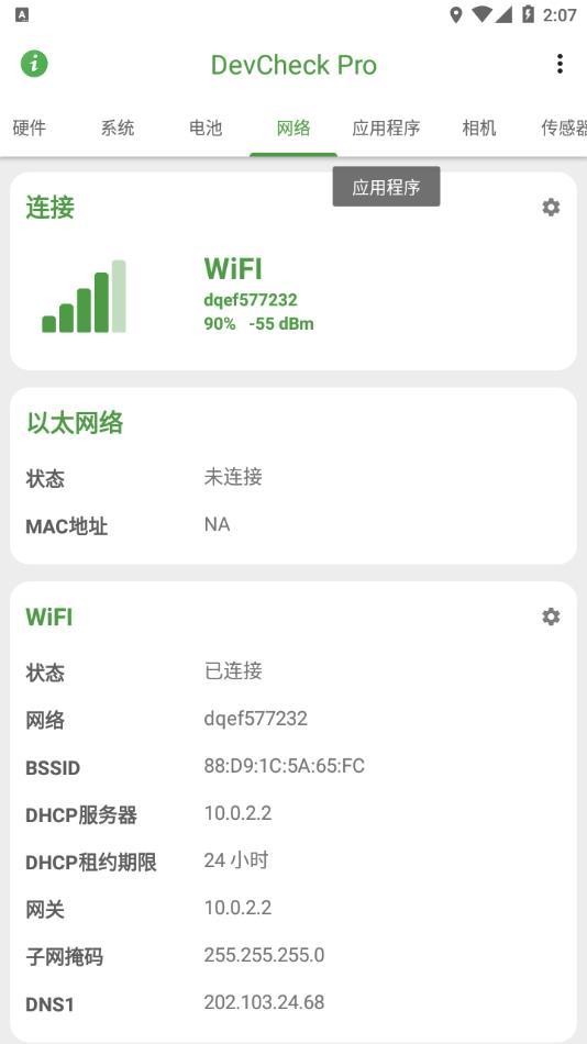 3、支持查看手机的硬件参数,相机、系统信息、网络信息和电池信息,覆盖非常全面。