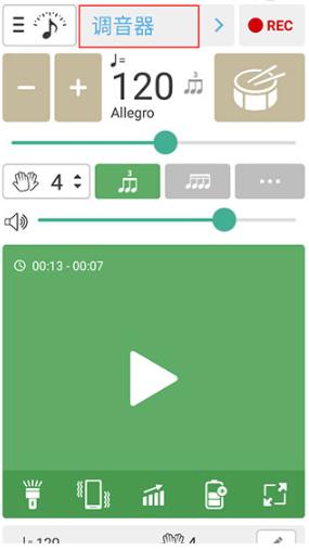 1、打开软件后为节拍器,点击上方“调音器”三个字进入调音器。