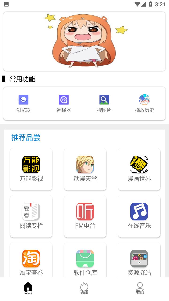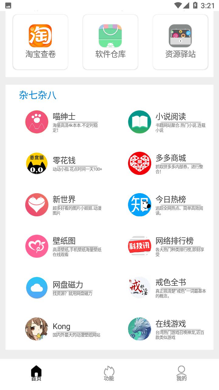 首页集成了一些常用的功能,包括:浏览器、翻译器、搜图片等工具,全部都是来自国内外知名网站,无任何广告弹窗打扰,即点即用,无需等待。