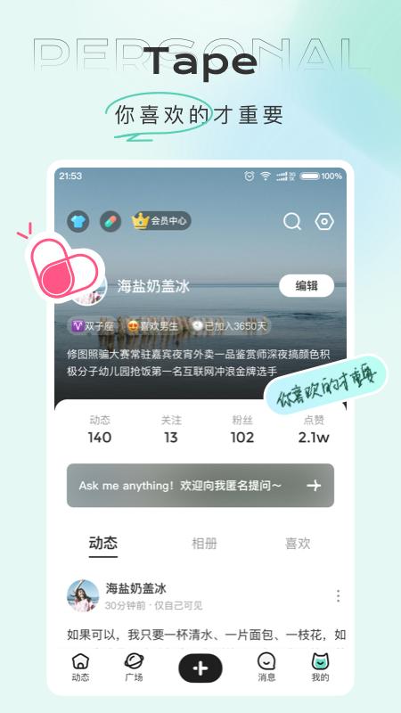 Tape app是一款有趣的交友app,在这里我们采用了全新智能匹配模式,不会完全按照你的关注和各类的订阅去为你展示内容,在这里同时没有推荐,也没有什么猜你喜欢的?更加没有莫名其妙的交友配对模式,你所要做的就是像其他人一样定制自己的社交圈,你想看什么,我们为你展示什么。感兴趣的朋友们快来点击下载吧!
