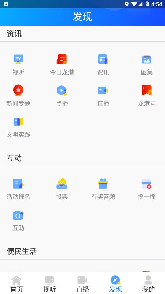 龙港在线app是专为龙港制作的融媒体移动平台,平台拥有新闻资讯,视听,直播,发现等等功能内容,可以帮助更好的引导及服务龙港。