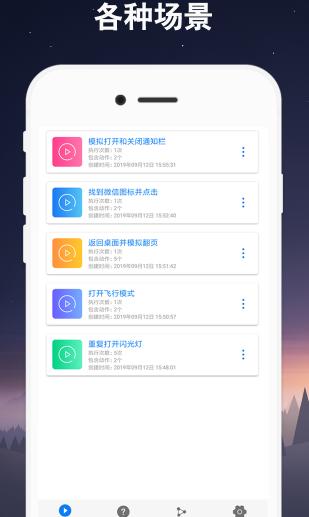 手势录制,功能多样:可以录制多种手势行为,支持单点点击、多点循环、滑动组合等其他不规则手势操作;