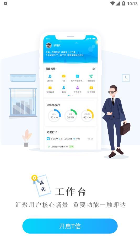 T信安全版最新版下载是一款由格创东智(深圳)科技有限公司开发的办公软件,软件内拥有全面的办公功能,可以帮助员工线上管理办理业务,提交审核方案,线上会议制定计划,提高工作效率。