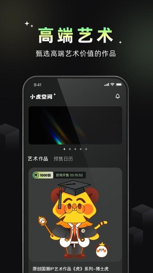 小虎空间app是一款由虎诺互联网科技(重庆)有限公司开发打造的数字藏品交易平台,来小虎空间,带你开启更安全的数字收藏之旅,一起发现更多艺术作品的魅力。