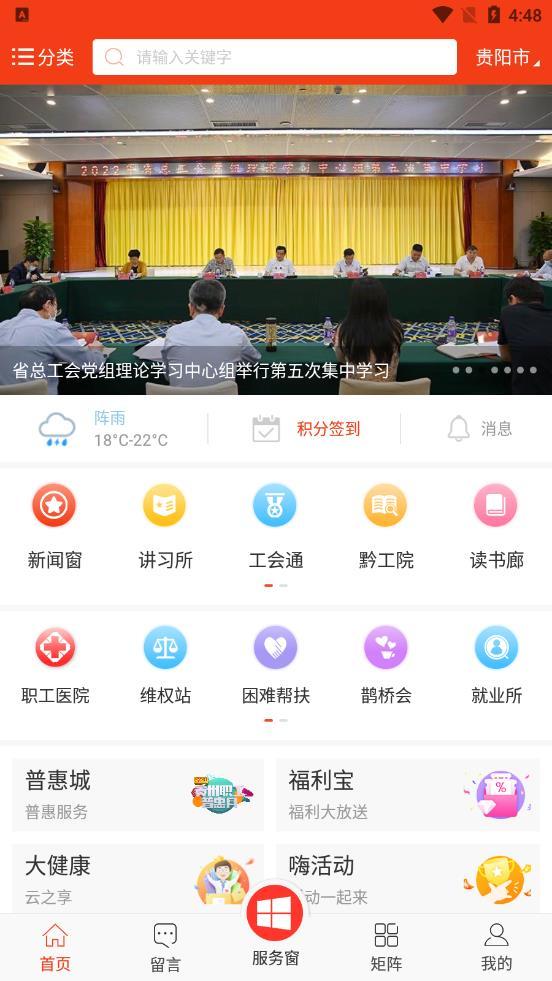 3、贵州工会云是贵州省工会首先在全国各地工会系统软件启用的集“服务、政务服务、商务接待”为一体的服务职工云服务平台,一站式整合了工会各种服务职工新项目。