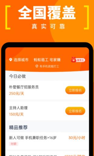 海量靠谱岗位,工资日结有保障,兼职就选蚂蚁临工。非常适合大学生兼职、宝妈兼职、白领兼职等人群利于空余时间提高收入。
