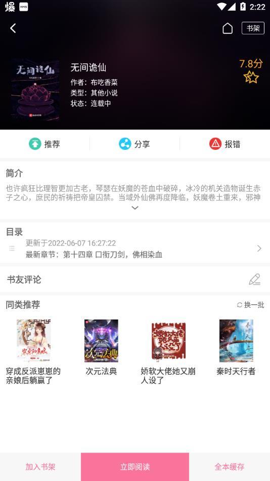 书城所有书籍可一键缓存,告别网络的限制,随时随地,想看就看!
