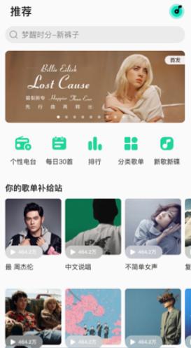 界面十分的简洁,支持各种热门和最新音乐,一起来听歌。