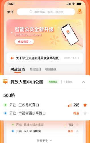武汉智能公交app下载最新版本是一款由武汉公交智通科技有限公司开发的出行服务软件,软件内拥有非常全面的出行服务功能,可以帮助用户线上查询最优出行路线,自动导航,扫码乘车更加方便,还有车辆班次时间服务,让用户不错过下一趟车。