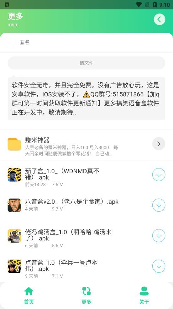 茄子盒1.0官方下载手机版是非常有趣的掌上语音包分享平台,这里会有很多不同特效的语音可以为你提供,你喜欢什么样的都可以直接的保存下来,不管你是聊天还是游戏开黑都可以满足你,你也可以自己制作搞怪语音包,感兴趣的赶紧来试试吧!