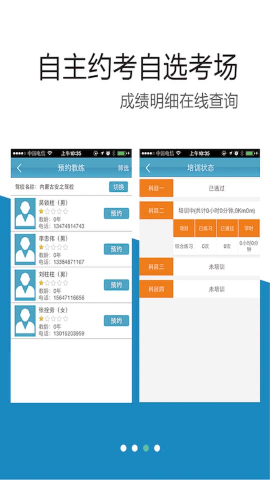 移动互联足不出户,实现一键解决学车报名、预约培训、预约考试、查询培训记录和培训成绩,以及评价投诉、在线支付等功能。