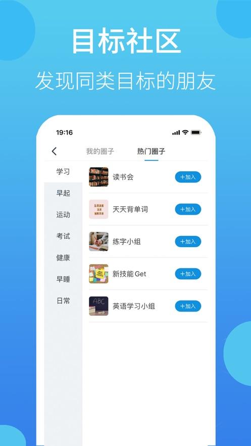 目标发起:定下希望实现的目标,其他用户可以关注和监督,也可将目标设为隐藏默默完成。