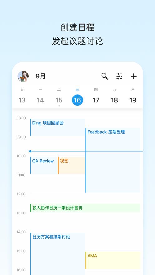 在线创建日程,日周等多种视图,帮助你有序管理时间。